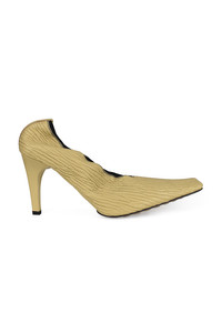 Mustard yellow Bottega Veneta Crunch pumps. Textured calf leather. Square toe. Elastic collar. 9 cm covered stiletto heel. Leather and rubber sole. Made in Italy.