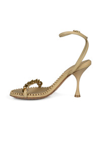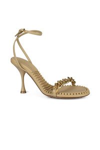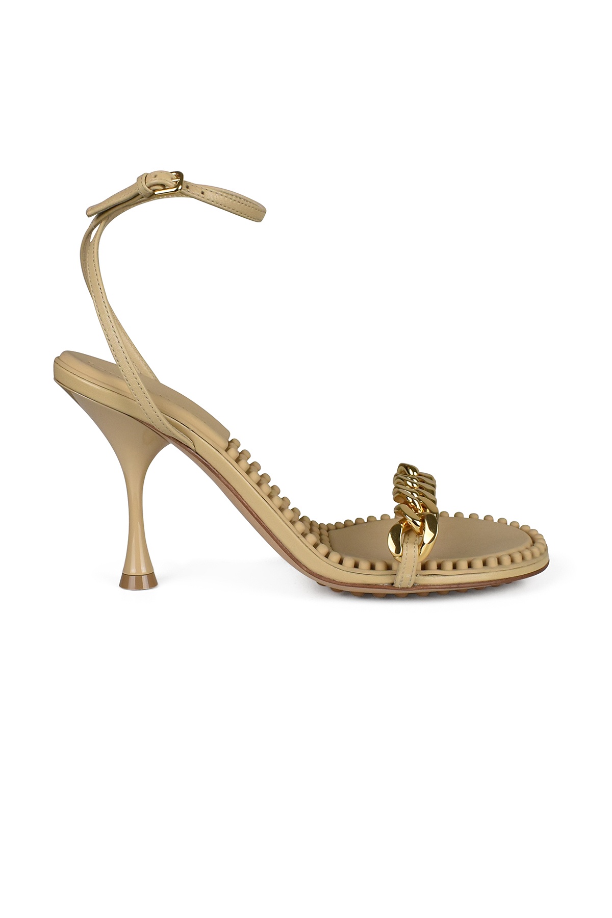 Bottega Veneta Dot sandals in beige leather. Gold chain on front strap. Removable gold sphere. 9 cm heel. Molded rubber insole. Leather and rubber outsole. Made in Italy.
