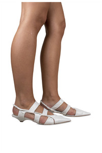Bottega Veneta BV Point sandals in white leather. Strappy shoes. Pointed toe. Small, slightly closed 3 cm heel. Brown leather sole. Made in Italy.