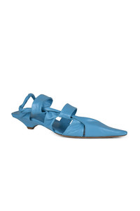 Bottega Veneta BV Point sandals in blue leather. Strappy shoes. Pointed toe. Small, slightly closed 3 cm heel. Brown leather sole. Made in Italy.