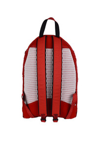 Christian Louboutin Backparis backpack in red nylon. Flat front zippered pocket with metal details at center. Bag contours in red rubber with embossed logo and stud details. Red adjustable logo straps. White mesh back. Double main zip closure. Dimensions: depth 12 cm x height 42 cm x width 27 cm. Made in Italy.