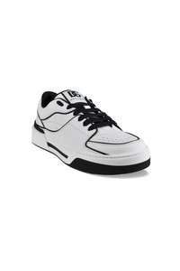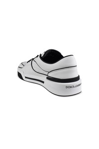 New Roma Dolce&Gabbana low-top sneakers in white leather. Black details. Black and white logo patch on tongue. Black laces. White and black rubber sole with logo on back. Made in Italy.
