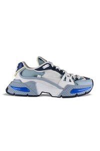 Dolce&Gabbana Airmaster sneakers in blue and white. Yoke design. In nylon, calf leather and suede. Dark blue leather counter with white “DG” embroidered logo. White lace-up closure. Tongue with logo patch. Thick, three-tone rubber sole. Made in Italy.