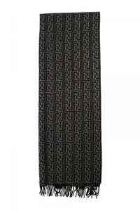 Black wool scarf Fendi. Customized side with beige and black FF pattern. 3D effect. The other side is plain black. Made in Italy.