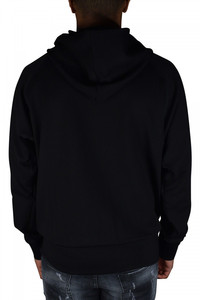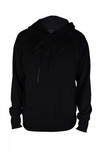 Giuseppe Zanotti hoodie in black fabric with crystal embellished logo. Black rhinestone "signature" on the front. Kangaroo pocket. 95% Viscose 5% Elastane Made in Italy.