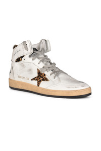 Sky Star white and leopard print sneakers. Round toe. Emblematic star in animal material. White lace-up front closure. Logo patch on tongue. Padded ankle. Print on side and heel. Rubber outsole. 100% leather. Made in Italy.