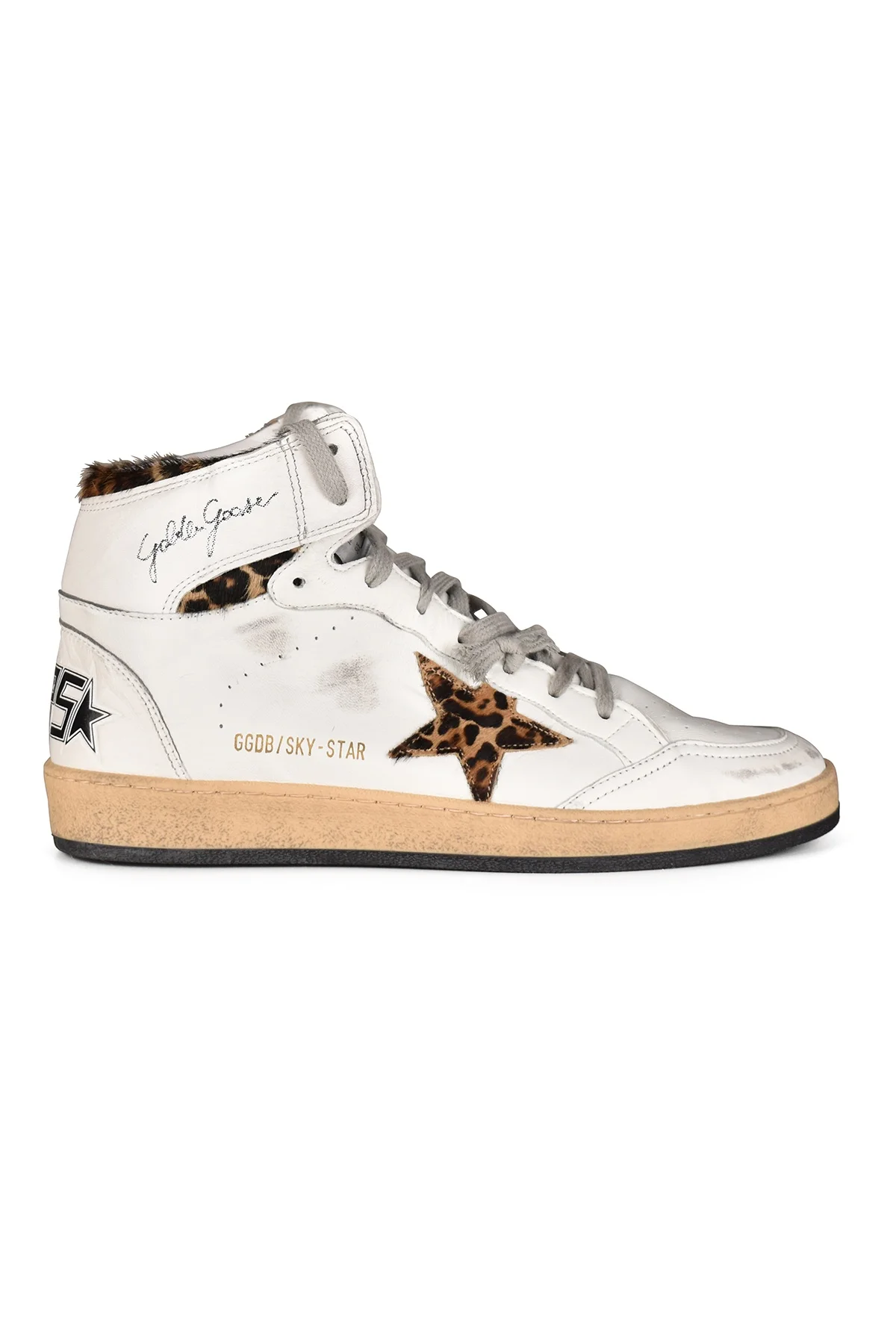Sky-Star sneakers with signature on the ankle and leopard-print pony skin inserts