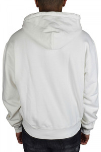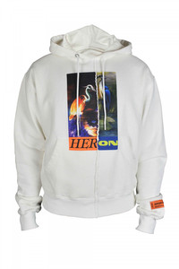 Heron Preston hoodie in white cotton. Long sleeves with pelican graphic print. Separation in the middle of the sweatshirt. Logo patch insert on sleeve. Front kangaroo pocket. Ribbed edges. 100% cotton.