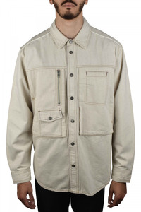 Off-white Pascuale denim jacket by Isabel Marant. Exposed seams. Classic collar. One pocket with zip closure. One pocket with button closure. Chest pocket. Buttons on handles. Main button closure. 80% Cotton, 20% Hemp.