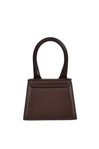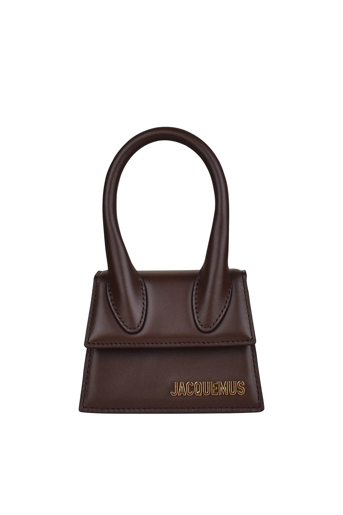 Jacquemus Le Chiquito dark brown mini bag. In smooth leather. Gold Jacquemus logo on the front. Reinforced handle. Magnetic flap closure. Inside pocket. Removable adjustable shoulder strap. Dimensions: 12 x 9 cm. Made in Italy.