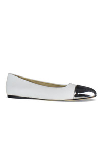 Jimmy choo white textured leather Watson Flat ballerinas. Silver metallic leather on the front. Rounded toe. Flat heel. Made in Italy.