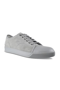 Lanvin DBB1 sneakers in grey suede. Grey leather edges. Rounded toe in grey leather. Tone-on-tone gum sole. Grey lace-up closure. Made in Italy.