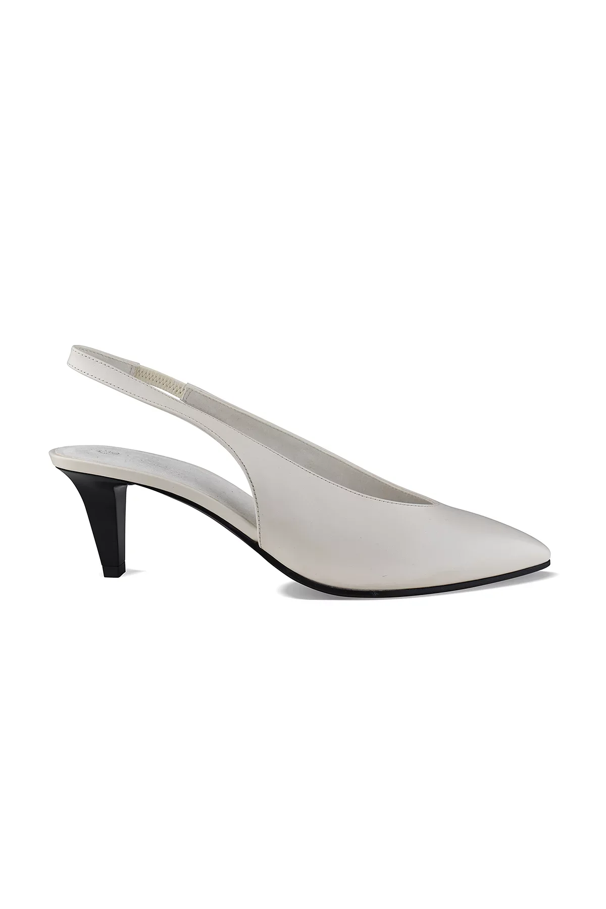 Rebecca pumps Loro Piana in white leather. Elastic back strap. Pointed toe. Small 5.5 cm black heel. Leather sole. Made in Italy.