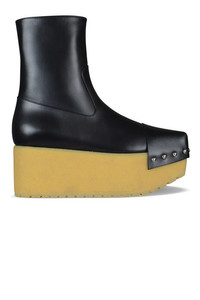 Moncler boots, Zulima model in black leather. From the line 2 Moncler 1952, collection No. 2 of the project Moncler Genius. Side zip closure. Square toe decorated with metal studs. Contrasting rubber wedge sole. Leather lining. 100% leather. Made in Italy.