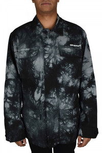 Off-White Arrow Tie Dye Jacket in grey. White signature logo on left chest. Iconic white cross symbol on back. Wide fit. Four large front pockets. Front button closure. Shirt collar. Made in Italy.