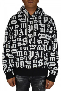 Palm Angels broken monogram black and white hoodie. Hood with white drawstrings. Long sleeves. Patch pocket. 100% cotton. Made in Italy.