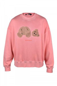 Palm Angels pink cotton sweatshirt. Embossed signature Teddy Bear. Pink Palm Angels logo on front. Ribbed edges. Round collar. Made in Italy.