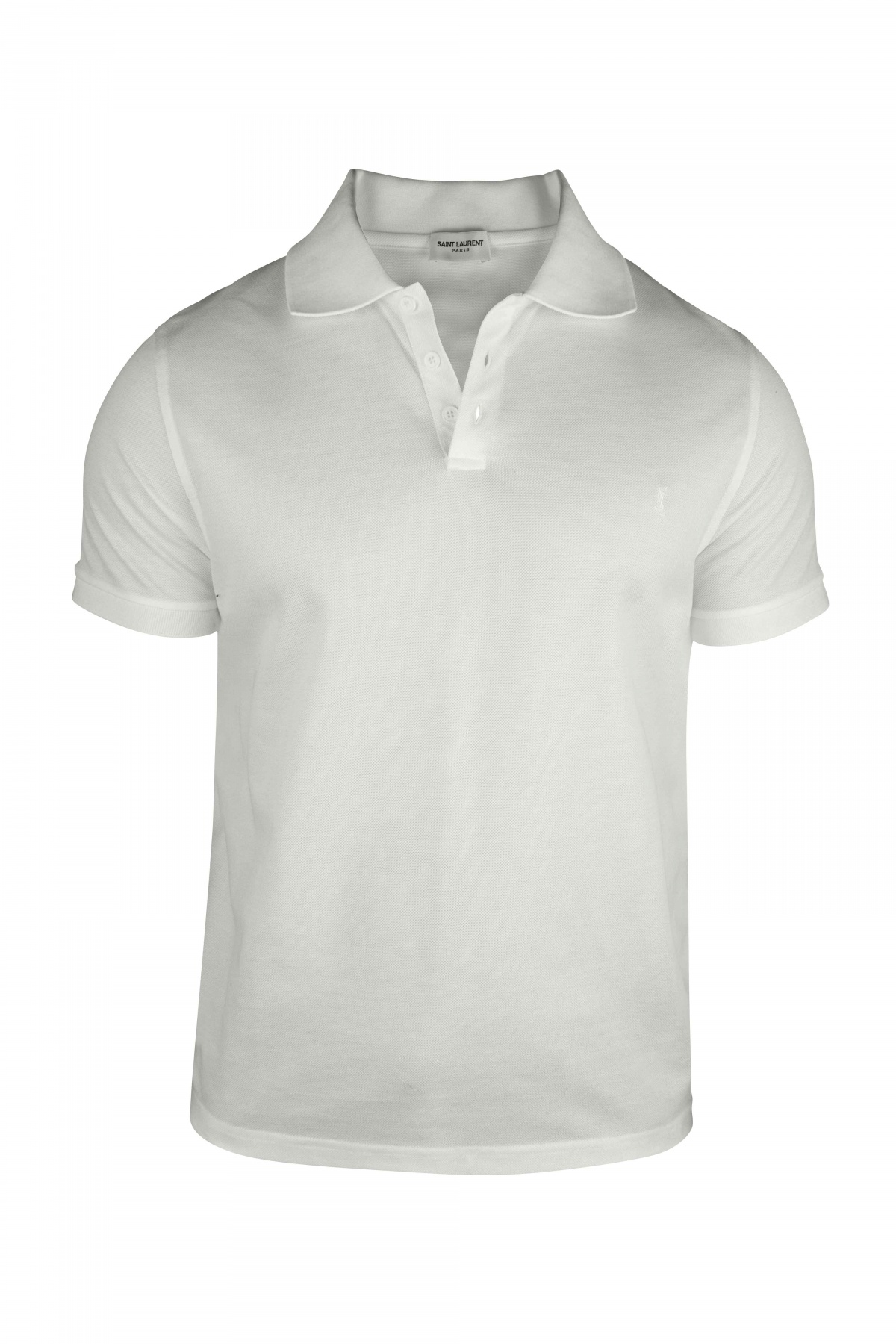 Cassandre Saint Laurent polo shirt. Organic cotton. YSL initials embroidered on chest. Collar with three buttons. Rib-knit edges. Short sleeves. 100% cotton. Made in Italy.