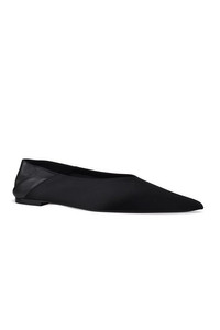 Nour 05 Saint Laurent mules in black satin. Flexible black nappa leather heel. Pointed toe. Leather sole. Heel height 0.5 cm. Made in Italy.
