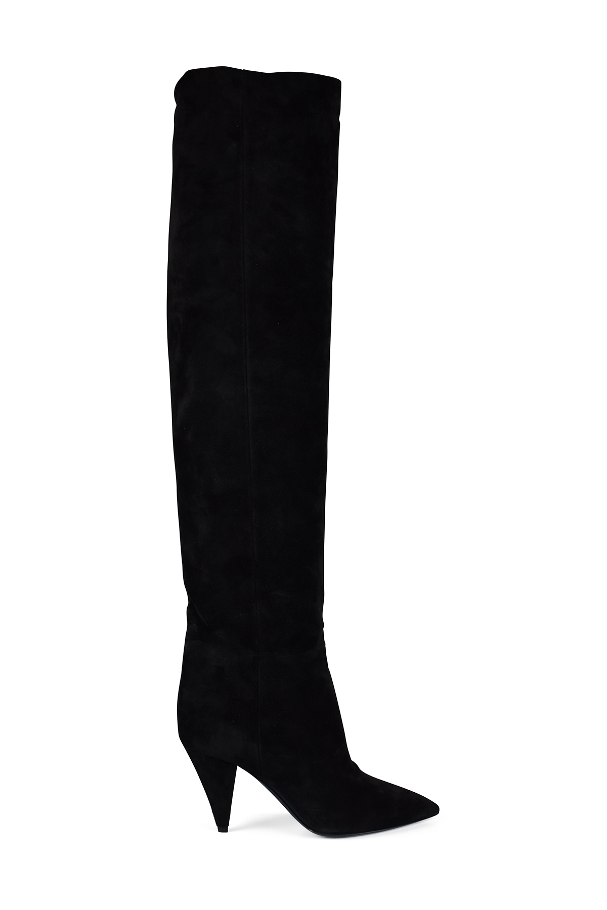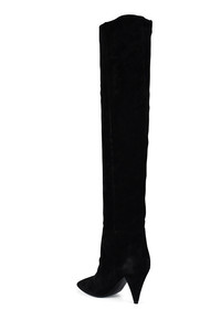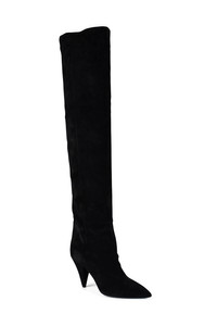 Black suede Kiki Saint Laurent thigh-high boots. Zip opening. Heel 11 cm. 100% leather. Made in Italy.