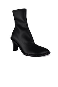 Ryder Stella McCartney black sock boots. Made of vegan leather. Silver stud detailing around the sole. Zipper on inner sides. Angular, rounded closed toe. Thick 8.5 cm heel. Made in Italy.
