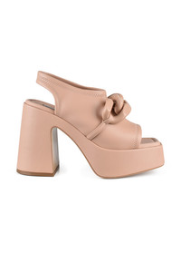 Stella McCartney pink Skyla wedge sandals. Tonal thick chain at front. Open toe. Platform sole. Heel height: 11 cm. Made in Italy.