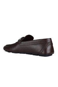 Valentino brown loafers. In grained leather. Silver-tone metal "V" logo plaque on top. Round toe. Black sole. Made in Italy.