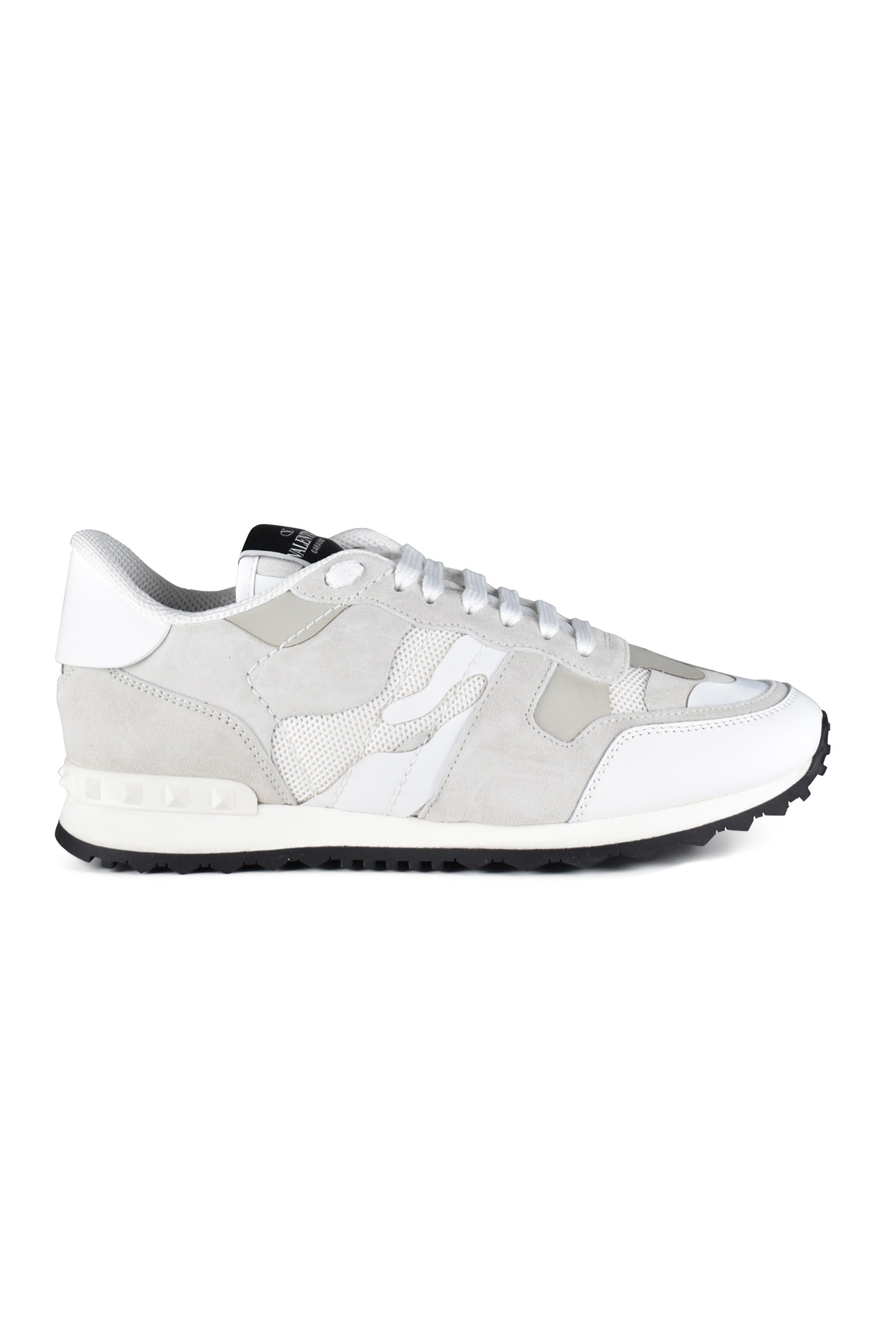 Rockrunner sneakers white camouflage Valentino. In knitted fabric, suede and leather. Decorative rubber studs. White leather counter. White and black rubber notched sole. Lace-up closure. Made in Italy.