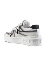 Valentino Garavani One Stud XL sneakers in white leather. Brown spray-effect stitching. White maxi stud with gloss finish. White thick lace-up closure. Black leather counter. Rubber outsole with stud details. 100% calf leather. Made in Italy.