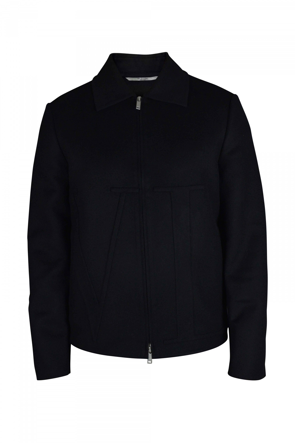 Black wool jacket Valentino. Side slit pockets. Black VLTN embroidery on front and back. Two-way zipper closure. Made of 90% virgin wool and 10% cashmere. Made in Italy.