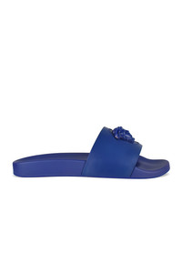 La Medusa Versace slides in royal blue leather. Embossed Medusa. Open round toe. Rubber sole. Made in Italy.