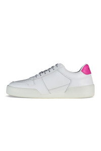Illus Medusa Versace sneakers in white leather. Medusa logo in pink. Lace-up closure. Pink leather counter. Versace inscription on the heel. Made in Italy.