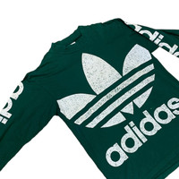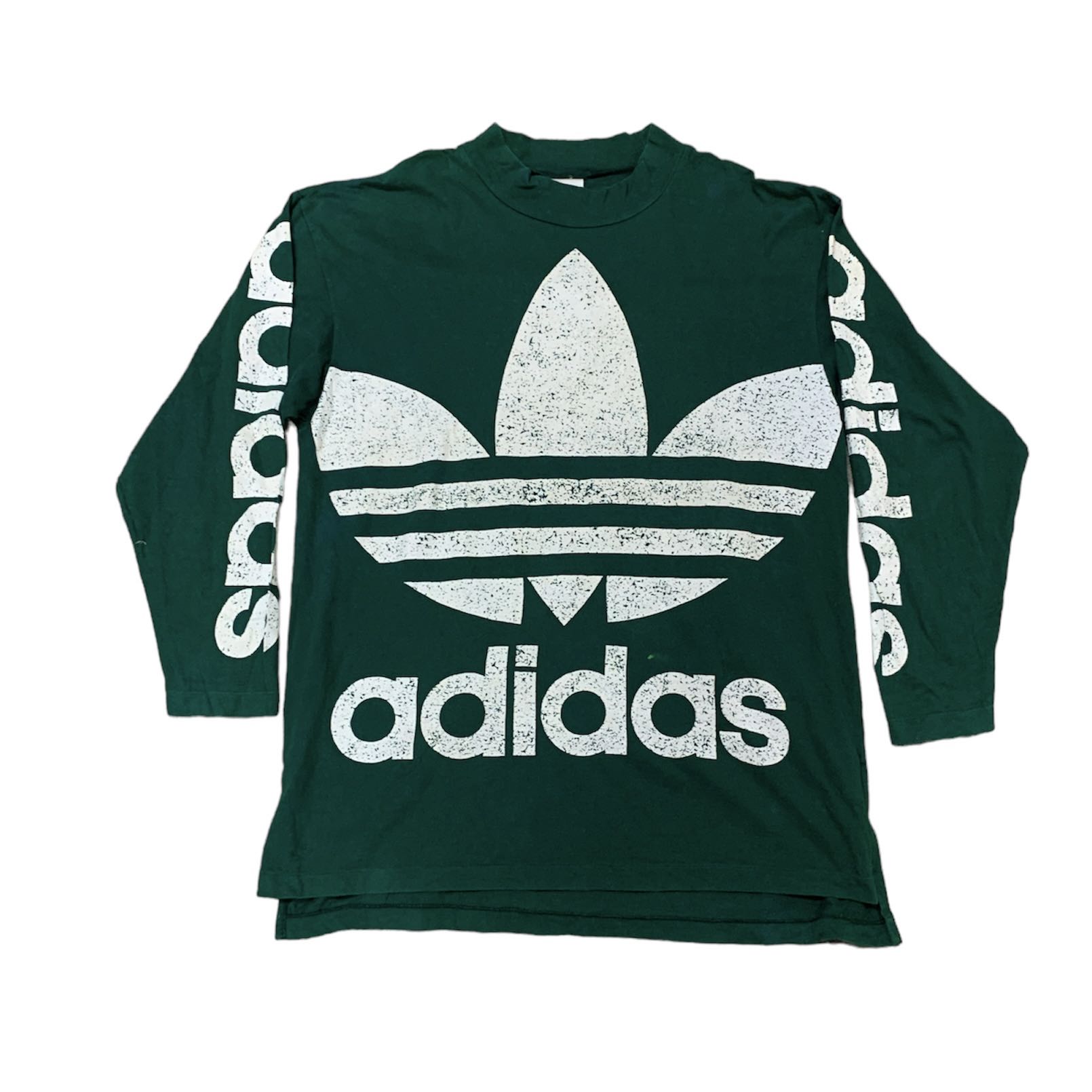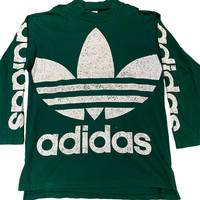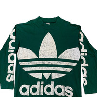 This is a pre-worn Adidas long sleeve t-shirt. Marked as size L (please refer to measurement details for the comparison). Material composition: 100% cotton. Minor stains at the front (see photo), no holes, or rips. Lay Flat Measurement: + Pit 23" + Length 30" front, 32" back #adidas #vintage90s #VintageAdidas #vintagetee