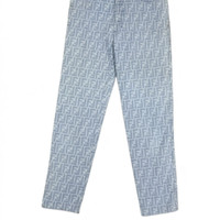 Preworn vintage Fendi Zucca jeans. Marked as size 27, actual size 26x27 (please check all measurement below for the best fits). Material composition 100% cotton. Zipfly with top button closure. Condition: has a minor yellow stains (please see all photo) Lay Flat Measurement: Waist - 13" Inseam - 27" Outseam - 38" Front rise - 11.5" Back rise - 14.5" Thigh - 9" Knee - 8" Leg opening - 6"