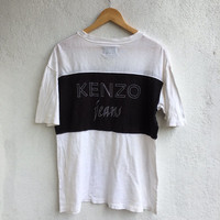 VTG KENZO JEANS T-SHIRT FREE SIZE FITS M Condition : Pre-worn / used. Brand tag's Kenzo Jeans. Marked as Free size, can fit up to M. Material composition 100% cotton. Made in Japan Defects (if any) : n/a Laying Flat Measurement Armpit-to-armpit : 20" Length : 27"