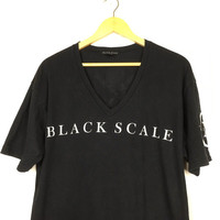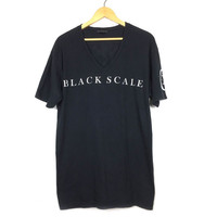 BLACK SCALE V-NECK T-SHIRT SIZE XL This is pre-worn item. Brand's tag is Black Scale. Marked as size XL (please check all measurement below for the best fits). Material composition 100% cotton. Made in USA Defects (if any) :- n/a Lay Flat Measurement:- Armpit-to-armpit 23". Length 31". Shoulded 22". Sleeve 9"