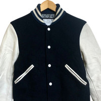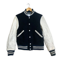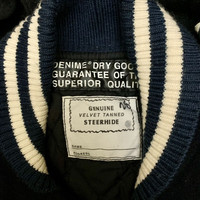 This is pre-worn Denime Japan letterman jacket. No size tag recomended to S (please check all measurement below for the best fits). Material composition wool & leather No stains, rips or holes. Lay Flat Measurement:- + Pit 19" + Length 24" + Shoulder 19" + Sleeve 24" Please be mind:- * all item are in used condition unless we state otherwise * all item were inspected and all flaws found will be noted & pictured for your attention. So please read all description and see all photo before purchase. * worldwide shipping using tracked Express (1-7 days) or Economy (11-23 days) * need more assistance? or more info, send us your dm.