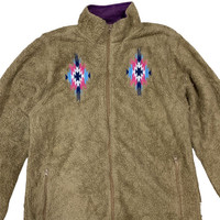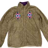 This is a pre-worn Apoy southwestern chimayo embroidered fleece sweater. Recomended size M (please refer to measurement details for the comparison). Material composition: 100% polyester. No stains, holes, or rips. Lay Flat Measurement: + Pit 20" + Length 25" CONDITION - [ ] Excellence: New/NWT/NWOT - [ ] Very good; light used or worn - [ ] Good, used, worn and well maintained - [ ] Fair: frequently worn and showing defects. - [ ] Very worn, distressed, and defective. **Please note that all used garments may have shown some signs of wear, minor stains, stretching, shrunk, or being previously modified or altered by a previous owner, unless stated as NEW. We will try our best to inspect the garment, and all flaws found will be photographed and described briefly. TERM & CONDITIONS ▪️The order will be shipped within 1-2 business days. ▪️Worldwide shipping via DHL Express (WPX) takes 1–7 business days. ▪️All sales are final. Goods sold are not returnable. ▪️Please read all descriptions and see all photos before making a purchase or bid. ▪️️Combined shipping is welcomed. Send a message for assistance. ▪️Buy with confidence! << THANK YOU >>