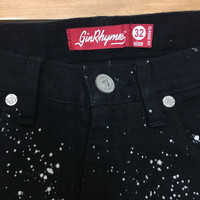 GINRHYMES JAPAN SPLATTER SKINNY JEANS W32 Great used GinRhymes denim pants. Tagged size 32. 97% cotton, 3% polyurethane. Made in Japan Laying Flat Measurement: Waist : 16" Inseam : 31" Outseam: 41" Front Rise : 10" Back Rise: 14" Leg opening : 6"