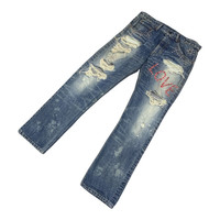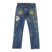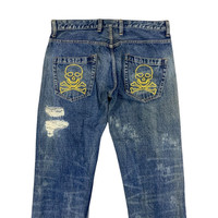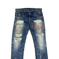 Preworn vintage RNA Japan distressed punk style jeans. Marked as size M or W33x33 (please check all measurement below for the best fits). Material composition 100% cotton. Zipper & top button closure. Condition: preworn Lay Flat Measurement: Waist - 16.5" Inseam - 33" Outseam - 39" Front rise - 10" Back rise - 14" Thigh - 10" Knee - 8" Leg opening - 7.5"