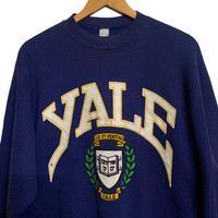 This is pre-worn vintage Yale University sweatshirt. Brand tag's Discus Athletic/Tultex. Marked as size XL (please check all measurement below for the best fits). Material composition 100% cotton. Flaws : minor cracks on prints, 2 holes on the sleeve Lay Flat Measurement:- + Pit 25" + Length 29” + Shoulder 20" + Sleeve 25.5" Please be mind:- * all item are in used condition unless we state otherwise * all item were inspected and all flaws found will be noted & pictured for your attention. So please read all description and see all photo before purchase. * worldwide shipping using tracked Express (1-7 days) or Economy (11-23 days) * need more assistance? or more info, send us your dm.