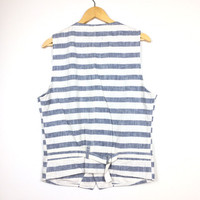 SHIPS JAPAN STRIPED VEST JACKET SIZE L This is pre-worn item. Brand's tag is Ships. Marked as size L (please check all measurement below for the best fits). Material composition Cotton blend. Defects (if any) :- n/a Lay Flat Measurement:- Armpit-to-armpit 20 1/2". Length 25 1/2" front, 24" back . Shoulder 14 1/2"