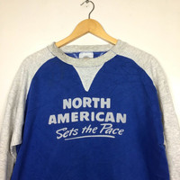 VTG MEDALLION NORTH AMERICAN AVIATION SET THE PACE SIZE L This is pre-worn item. Brand's tag is Medallion. Marked as size L (please check all measurement below for the best fits). Material composition 50% cotton and 50% polyester. Made in USA Defects (if any) :- n/a Lay Flat Measurement:- Armpit-to-armpit 24". Length 27