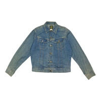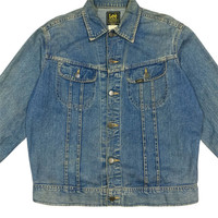 Pre-worn vintage 90's Lee Riders x Edwin 0411 reproduction 101J trucker jacket. Size L (Please use measurements for best fit, as sizes vary between brands!). Made in Japan. 100% denim cotton. Condition: shows sign of worn and faded, minor stains. Lay Flat Measurement:- • Chest / Bust (pit to pit): 24" • Length (peak of shoulder to hem): 25" • Shoulder: 18" • Sleeve: 25.5" • Waist: 20" Please see all photos for exact details of the item's condition. Feel free to message me with any questions you may have. I do my best to check the clothing thoroughly, but please consider its pre-loved condition. 😉 Thanks & happy shopping