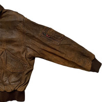This is a pre-worn vintage Kadoya bomber leather jacket. Marked as size L (please refer to measurement details for the comparison). Material composition: 100% leather. There's patina, distressed,flaws, scratches & holes due to ages (pls see all photos) Lay Flat Measurement: + Pit 25.5" + Length 26" CONDITION - [ ] Excellence: New/NWT/NWOT - [ ] Very good; light used or worn - [ ] Good, used, worn and well maintained - [ ] Fair: frequently worn and showing defects. - [X] Very worn, distressed, and defective. **Please note that all used garments may have shown some signs of wear, minor stains, stretching, shrunk, or being previously modified or altered by a previous owner, unless stated as NEW. We will try our best to inspect the garment, and all flaws found will be photographed and described briefly. TERM & CONDITIONS ▪️The order will be shipped within 1-2 business days. ▪️Worldwide shipping via DHL Express (WPX) takes 1–7 business days. ▪️All sales are final. Goods sold are not returnable. ▪️Please read all descriptions and see all photos before making a purchase or bid. ▪️️Combined shipping is welcomed. Send a message for assistance. ▪️Buy with confidence! << THANK YOU >>
