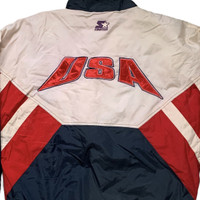 This is a pre-worn USA team for 1996 Atlanta Olympic . Missing tag, recommended for L (please refer measurement details for the comparison).Material composition 100% cotton. Please read all details below before purchase. Lay Flat Measurement:- + Pit 28" + Length 28" + Shoulder n/a + Sleeve 30.5" <> - [ ] Excellence - New/ NWT/NWOT - [ ] Fair - frequently worn & show defects - [ ] Very Good - light used/ worn - [x] Good - used/worn & well maintained - [ ] Very worn - distressed & defects **Please note that all used garment may have shown some sign of worn, stretched, shrunk or previously modified or altered by a previous owner)unless it was stated as NEW. We will try our best to inspect the garment and all flaws found photo will be taken and described briefly. Please see all photo or ask me before purchase << NOTE >> ▪️Almost items are pre-worn, unless it stated otherwise. ▪️Please don’t expect the item in pristine condition. We try our best to inspect and check the condition for each item. Every flaws will be stated and the photo will be taken for your attention. ▪️Order will be shipped within 1-2 business days. ▪️Worldwide shipping via DHL Express (WPX) 1-7 business days. ▪️All sales are final. Goods sold are not returnable. ▪️Please read all description and see all photo before make a purchase/bid. ▪️Combine shipping are welcomed. Send a convo for assistance. ▪️Buy with confidence! << THANK YOU >>