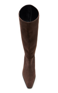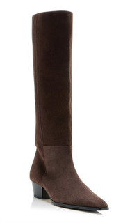 Founded in 2015 by founder and creative director Luisa Dames, Berlin-based footwear and accessories brand envisions a more understated version of luxury and sets out to democratize modern design and enduring quality. Drawing from German concepts of modernity, Aeyde has developed a signature aesthetic defined by classic shapes and modern details—marrying form and function, the past and the present, the masculine and the feminine. The 'Medea' is a knee-high boot made from buttery suede with an almond toe and stacked Cuban heel. PRODUCT DETAILS - Heel height measures approximately 30mm/ 1" - Pull on - Composition: cow suede - Made in Italy