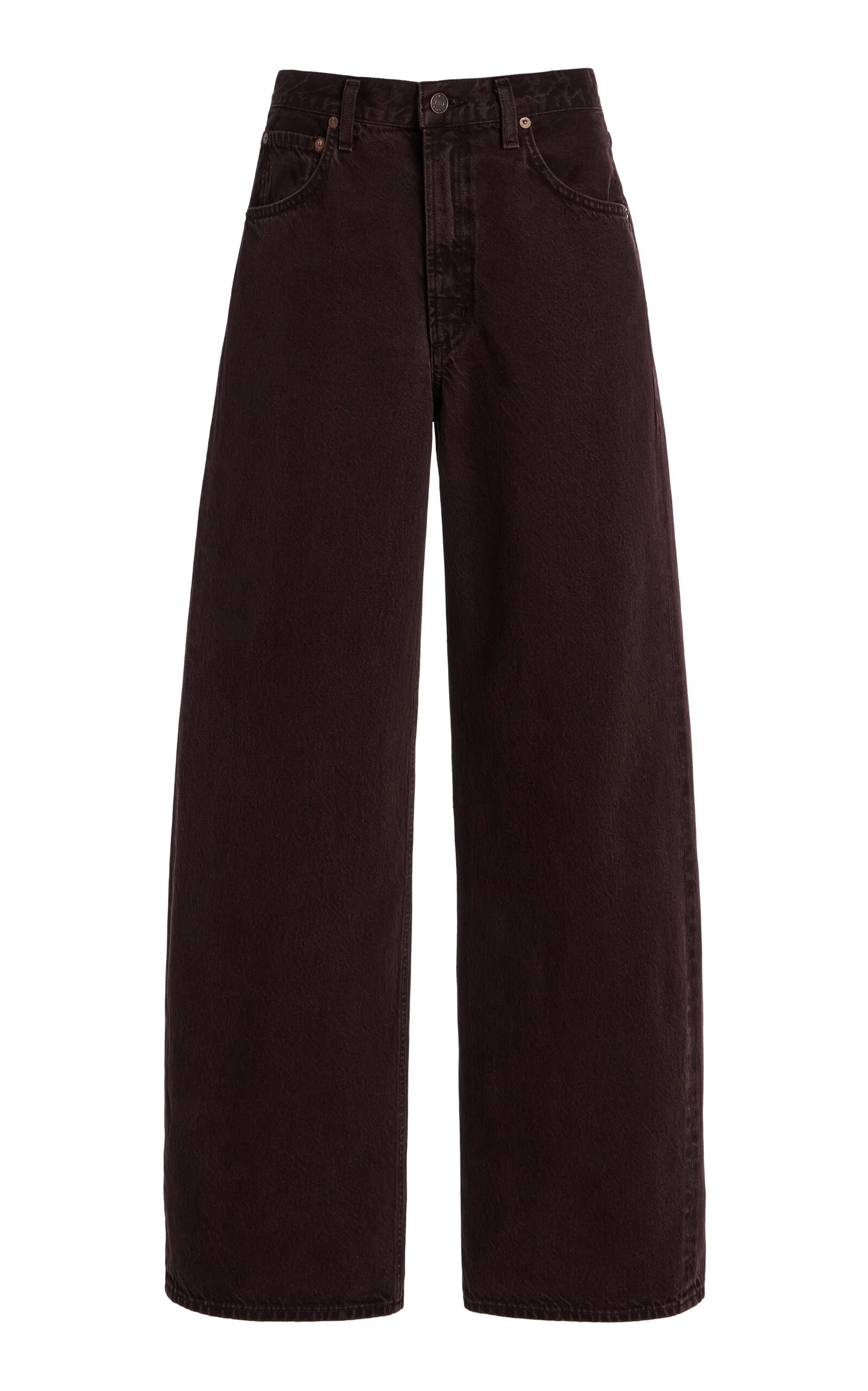 Inspired by the classics, AGOLDE offers the authenticity and rarity found in discovering the perfect vintage pair. With a focus on sustainability and comfort, its thoughtfully considered designs are personally and carefully tested to ensure each fit and fabric meets the highest standards. The Low Curve Jean is cut to a mid-rise with a relaxed waist and gently tapered leg, offering a laid-back, yet sharp silhouette. Made from regenerative cotton, the design combines effortless ease with structure, making it a versatile staple. Pair it with a simple tee or oversized shirt for an understated, everyday aesthetic. PRODUCT DETAILS - Fall '25 - Zip fly fastening - Composition: 100% regenerative cotton - Designer color: Sloe Berry - Machine wash - Imported