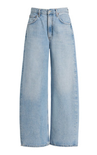 Inspired by the classics, AGOLDE offers the authenticity and rarity found in discovering the perfect vintage pair. With a focus on sustainability and comfort, its thoughtfully considered designs are personally and carefully tested to ensure each fit and fabric meets the highest standards. The Low Curve Jean is cut to a mid-rise with a relaxed waist and gently tapered leg, offering a laid-back, yet sharp silhouette. Crafted from non-stretch vintage marbled light indigo denim, it features subtle fading and whiskering for a worn-in, authentic look. Made from regenerative cotton, the design combines effortless ease with structure, making it a versatile staple. Pair it with a simple tee or oversized shirt for an understated, everyday aesthetic. PRODUCT DETAILS - Pre-Fall '25 - Zip fly fastening - Composition: 100% cotton - Designer color: Force - Machine wash - Made in the USA SIZE & FIT - Designed for a relaxed fit
