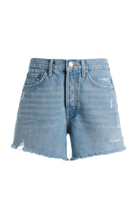 Inspired by the classics, AGOLDE offers the authenticity and rarity found in discovering the perfect vintage pair. With a focus on sustainability and comfort, its thoughtfully considered designs are personally and carefully tested to ensure each fit and fabric meets the highest standards. The Parker Long shorts are crafted from bright indigo denim with a vintage-inspired appeal, offering a relaxed high-rise and a comfortable fit through the thighs. Made from regenerative cotton, these shorts are a versatile wardrobe staple—effortlessly pairing with everything from casual tees to more elevated pieces. PRODUCT DETAILS - Spring '26 - Zip fly fastening - Composition: 100% regenerative cotton - Designer color: Swapmeet - Machine wash - Imported SIZE & FIT - Our model is wearing a size 26 - Our model is 5'11" with a 32" bust, 25" waist, and 35.5" hip - Inseam: 4.5"